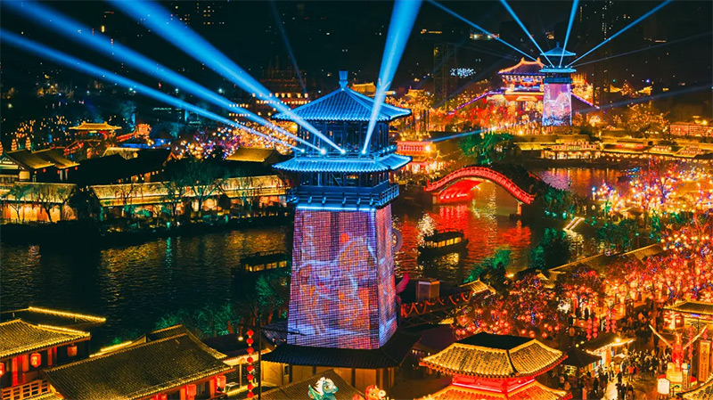 第九届国际灯笼展,百万盏花灯点亮夜空,宋风美学混搭国际元素,一步一景,穿越至宋代的上元灯会。